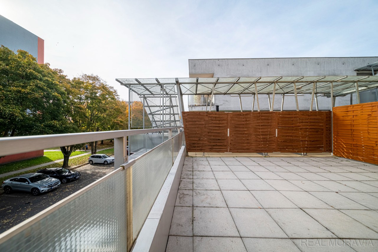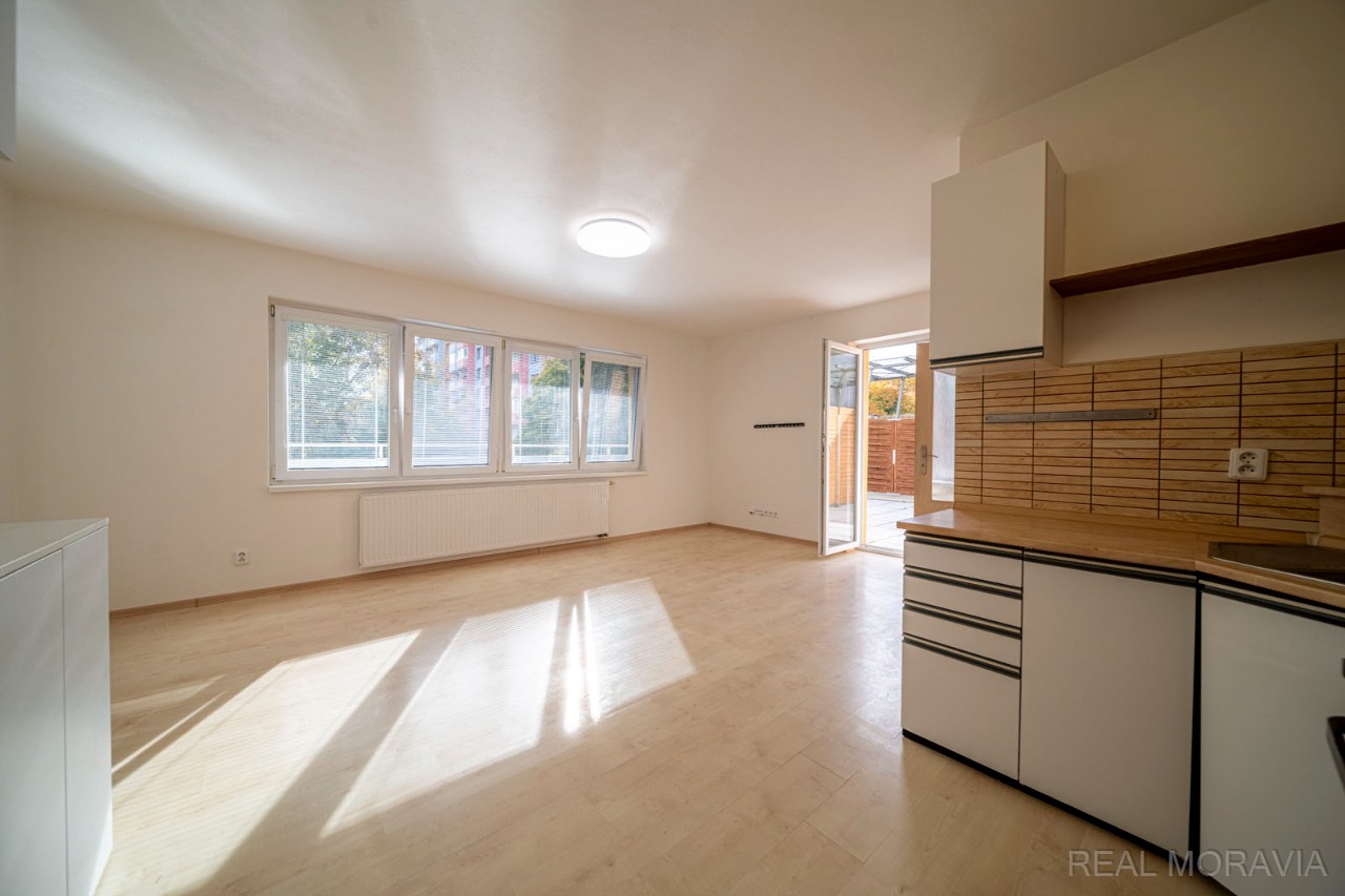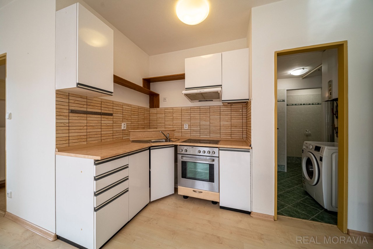 Prodej bytu 1+kk v osobním vlastnictví v lokalitě Kvítkovice, ul. Hlavní, Otrokovice. Podlahová plocha bytu činí 37,3m² + cca 24m² velká terasa (soukromá, přístupná pouze z předmětného bytu). Byt umístěn ve 2. NP (1. patro), vchodové dveře plastové, okna plastová s dvoj-skly, podlahy betonové kryté plovoucími podlahami (laminátové) a dlažba v koupelně. Vnitřní dispozice: vstupní chodba, pokoj s kuchyňským koutem a s výstupem na terasu, koupelna se sprchovým koutem, WC samostatné přístupné přes koupelnu. Vytápění bytu a ohřev teplé vody zajišťuje vlastní plynový kotel. K bytu náleží drátěná sklepní kóje umístěná na podlaží. Parkování zdarma na obecním parkovišti u domu. Měsíční platby 1869,- Kč/měsíc (vodné, stočné, správa domu, fond oprav, pojištění stavby atd.) + 1500,- Kč/měsíc zálohy na energie (plyn, elektřina). Výstavba provedena v r. 2008 - nadstavba nad stávající, původní objekt. Volné ihned. Klidná, tichá lokalita.